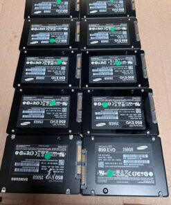 This job lot consists of 10 Samsung 850 EVO and 860 EVO SSDs, each with a storage capacity of 250GB. The SSDs have a 2.5-inch form factor and use the SATA III interface. The black-coloured drives are designed for internal use in laptops and offer fast, efficient data storage thanks to their solid-state technology. Perfect for those looking to upgrade their storage capacity with high-quality Samsung SSDs.