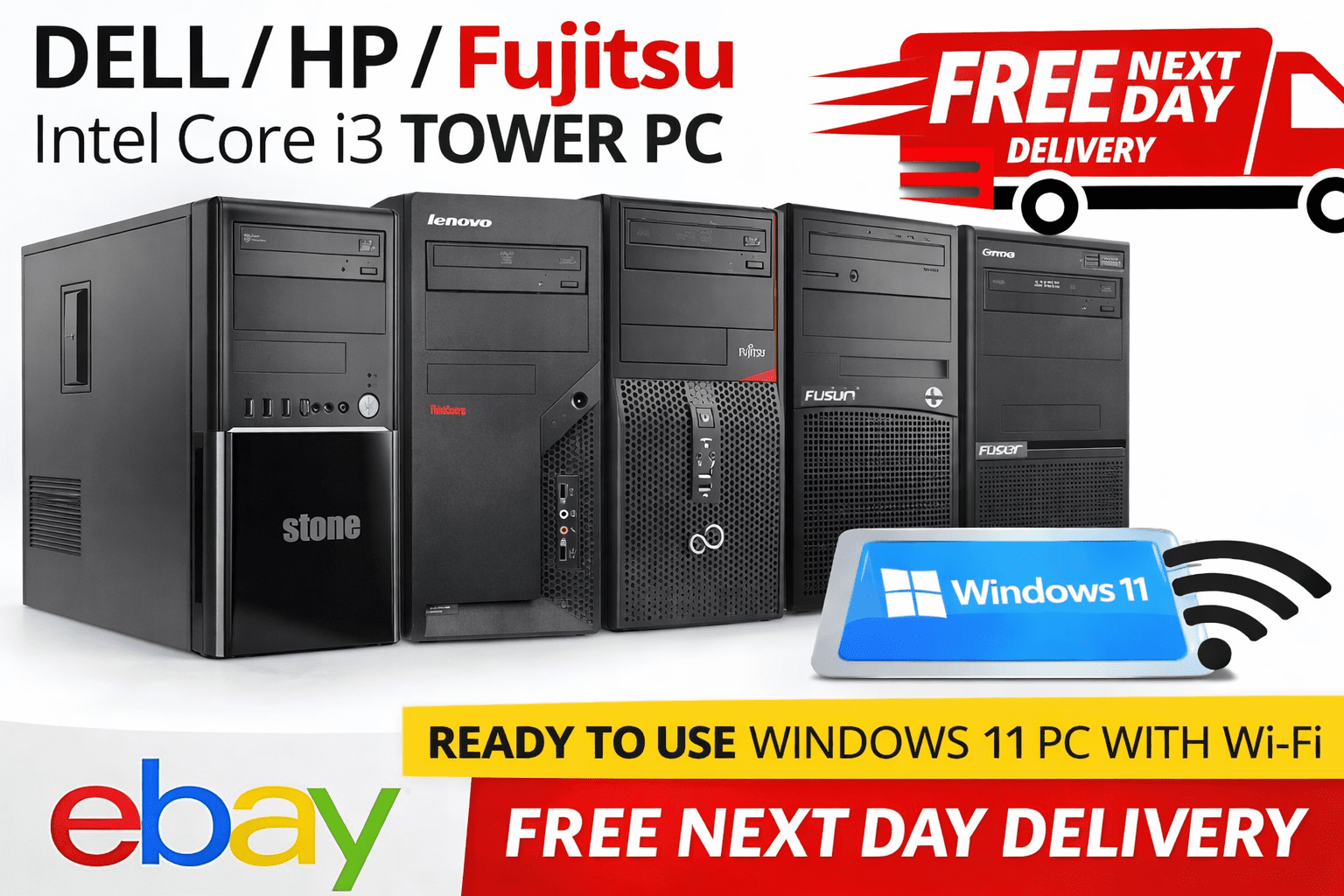 DELL / HP / Fujitsu / Various Intel Core i3 Tower PC Desktop Computer | Windows 11 Pro | 8GB RAM | 128GB SSD | Wi-Fi