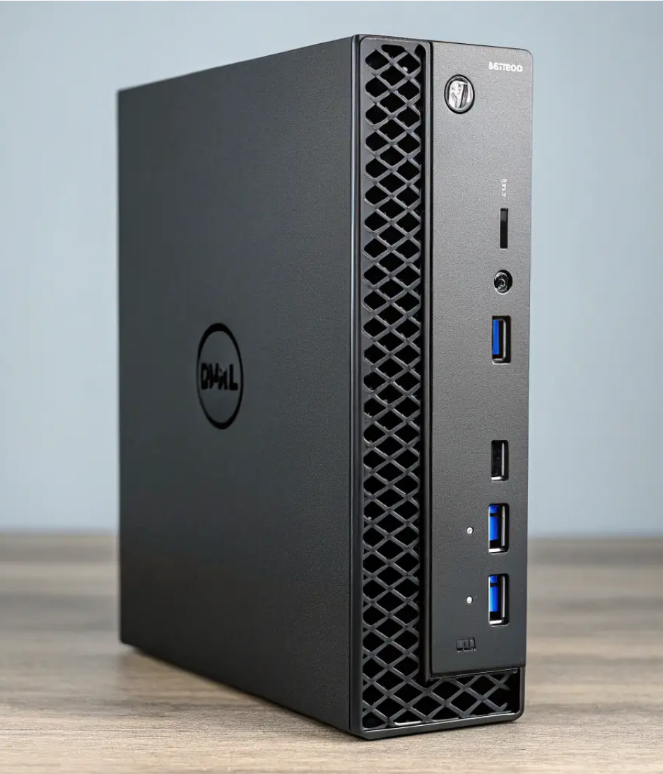 The Dell OptiPlex Micro Desktop is a compact and powerful computer designed for space-saving setups. It features a sleek black chassis with a minimalist design, equipped with the latest Intel processors, ample RAM, and fast SSD storage. Ideal for both office and home use, this desktop offers reliable performance in a small form factor. Professionally refurbished to high standards, it is fully tested and ready for immediate use.